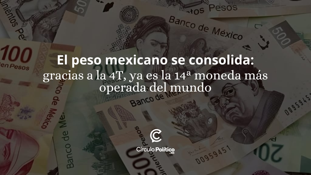 El peso mexicano se consolida: gracias a la 4T, ya es la 14ª moneda más operada del mundo.