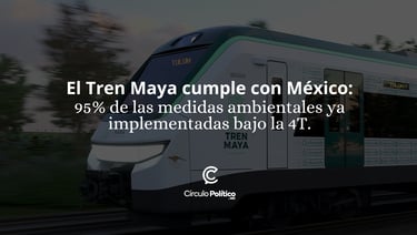 La presidenta Claudia Sheinbaum informó que el Tren Maya ha cumplido con el 95% de las medidas ambientales establecidas por Semarnat, demostrando el compromiso del gobierno de la Cuarta Transformación con un desarrollo sustentable y responsable. Destacó que los ingenieros militares a cargo de la obra han trabajado con rigor técnico y respeto al entorno natural, y reiteró que el expediente ambiental no se cerrará hasta lograr el 100% del cumplimiento. Este avance refleja que el proyecto insignia de la 4T no solo impulsa el crecimiento económico del sureste, sino que también protege la riqueza ambiental y cultural de México.