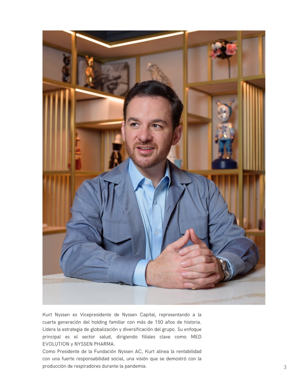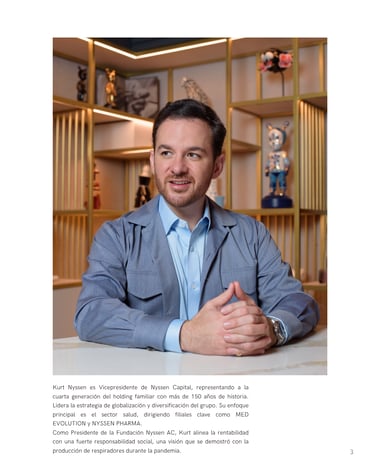 Ciudad de México - Kurt Nyssen, Vicepresidente de Nyssen Capital , representa la cuarta generación de un holding familiar con más de 150 años de historia. Liderando la estrategia de globalización y diversificación del grupo, Nyssen se ha enfocado en el sector salud a través de filiales clave como MED EVOLUTION y NYSSEN PHARMA. En esta conversación, comparte su visión sobre cómo la herencia familiar, la innovación y la responsabilidad social son los motores que impulsan su compromiso por México.